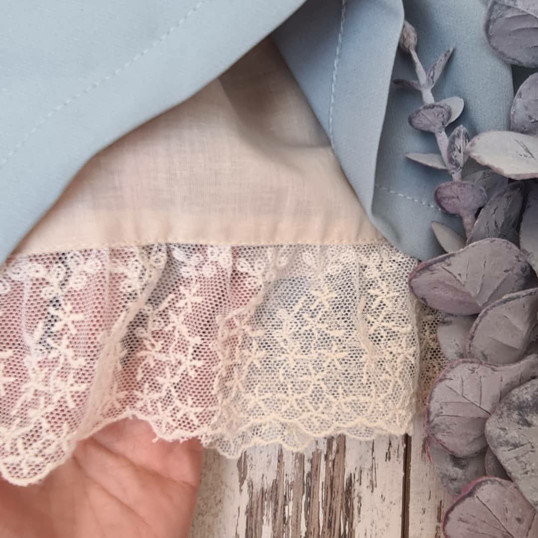 Compoziție: stofă de costum, căptușeală – batist, dantelă naturală, perle